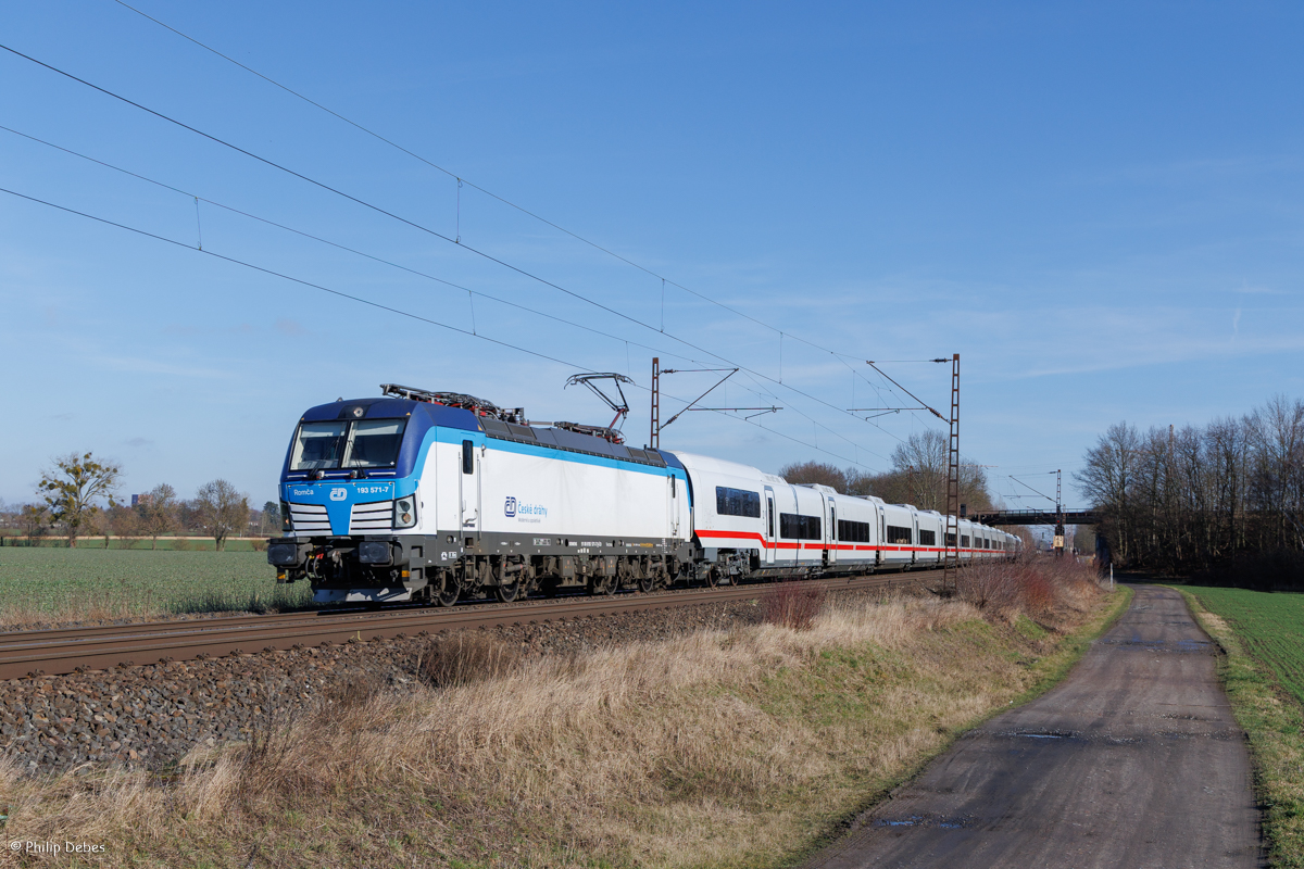 Railpool 193 151 "AME Raillogistik" am 27.02.2026 mit einem Containerzug unterhalb der Steinburg in der Residenzstadt Würzburg.