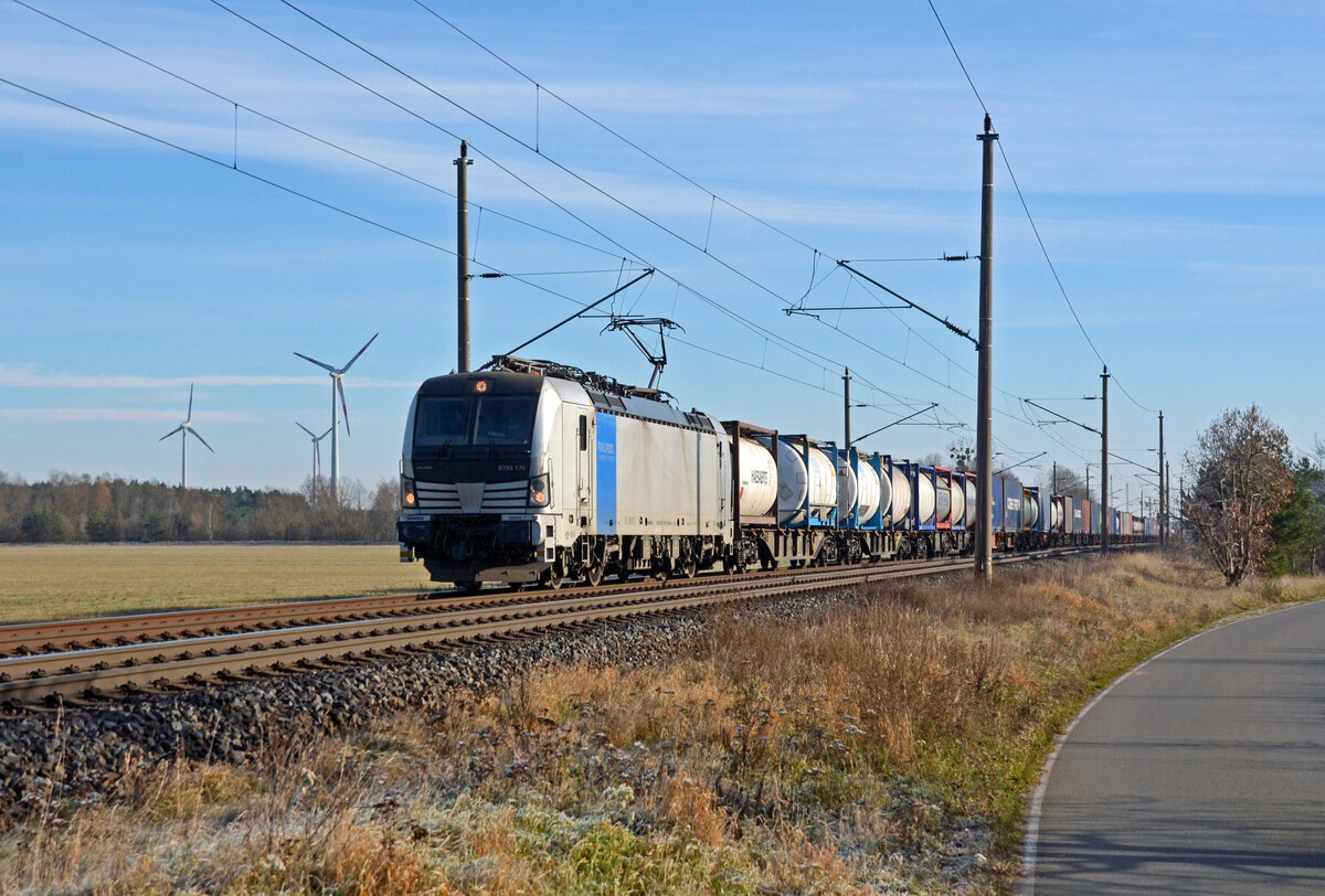 6193 176 der Railpool führte am 23.11.25 einen Containerzug durch Wittenberg-Labetz Richtung Magdeburg.