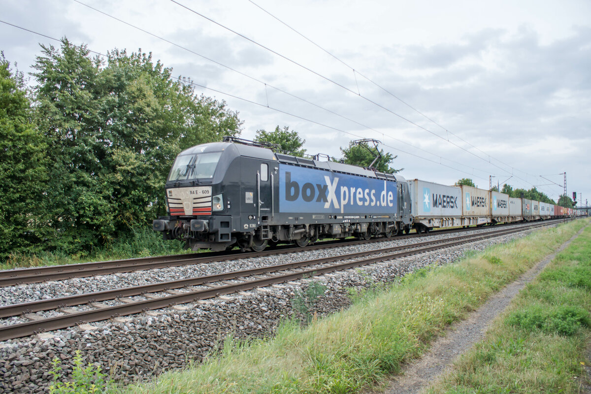 X4E -609 (193 609-5) zu sehen mit einen Containerzug bei Thüngersheim am 17.08.2021