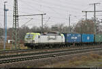 193 290 (NVR-Nummer: 91 80 6193 297-4 D-ELOC) Vectron mit einem Eurocity EC in Richtung Berlin bei der Durchfahrt durch den Bahnhof Wünsdorf-Waldstadt am 13.Februar 2022 gegen 14.00 Uhr.
