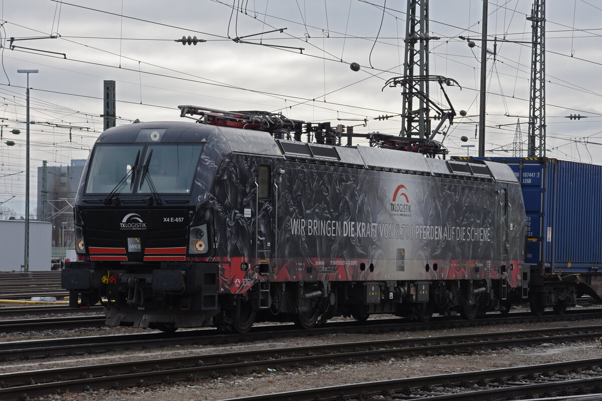 Siemens Vectron 193 657-4 durchfährt den badischen Bahnhof. Die Aufnahme stammt vom 23.01.2022.
