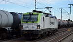 ELL Vectron 193 764-8 vermietet an die Frachtbahn, zieht ihren Güterzug aus Schiebewandwagen im Gleiswechselbetrieb in Richtung Treuchtlingen. 15.10.2022