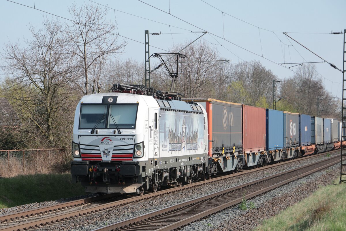 193 824 am 18.3.026 zwischen Langenbach und Thonstetten mit einem Autozug voll Audis.