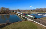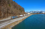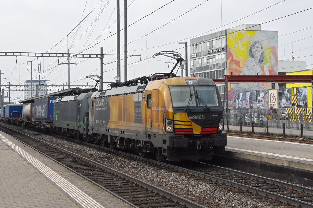 Doppeltraktion, mit den Siemens Vectron 193 299-5 und 193 256-5 durchfährt am 29.02.2024 den Bahnhof Pratteln.