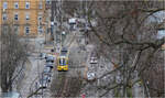 Hoch über der Stadt Deutschlandsberg trohnt die Burg "Lonsperch" (namensgebend für den heutigen Namen Deutschlandsberg) aus dem 12. Jahrhundert. Am Talboden verläuft hier die Eisenbahnstrecke von Graz nach Wies-Eibiswald in einem weiten 180 Grad Bogen und einer Steigung von bis zu 13‰. Die 193 601 fährt als S6 7359 von Graz Hbf nach Wies-Eibiswald hier kurz hinter dem Bahnhof Deutschlandsberg und wird gleich die früher gefürchtete Steigung auf die "Leibenfelder Höhe" in Angriff nehmen.