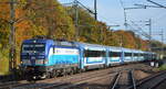 193 290 aus Richtung Berlin am 01. April 2024 mit einem EC im Bahnhof Dabendorf.