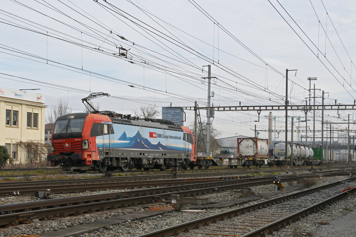 Siemens Vectron 193 477-7 durchfährt am 22.01.2026 den Bahnhof Pratteln.