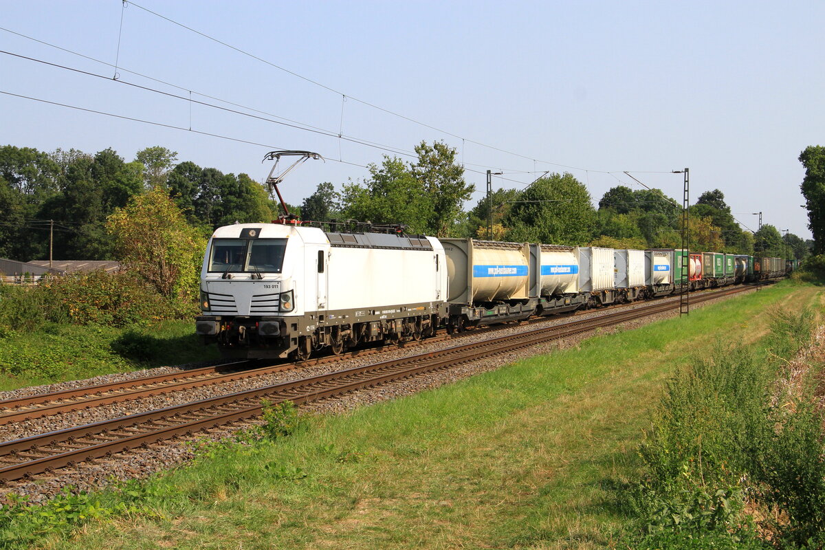 193 172 führte am 19.06.25 einen schlecht ausgelasteten Containerzug durch Jütrichau Richtung Magdeburg.