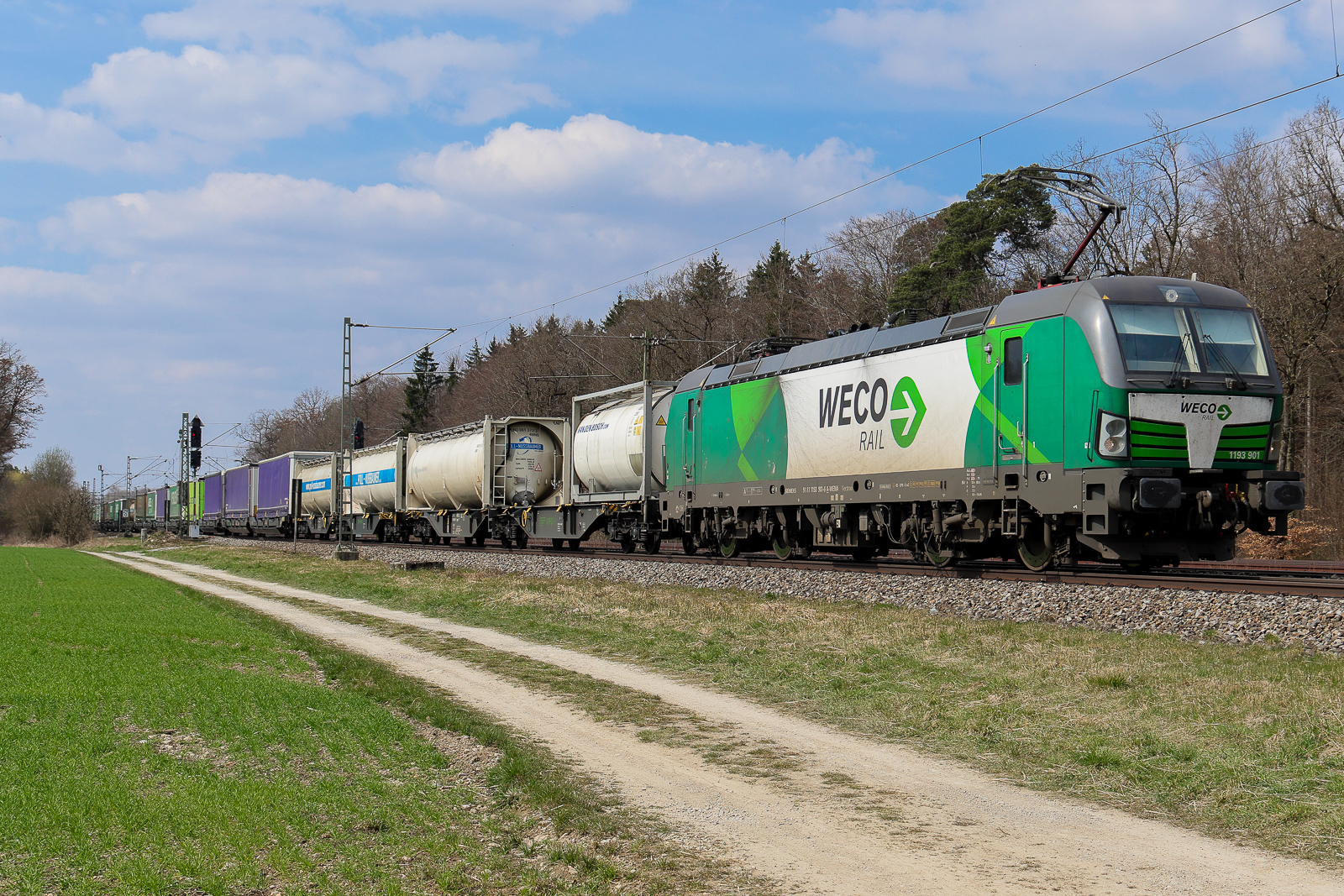Doppeltraktion, mit den Siemens Vectron 193 462-9 und 193 519-6 durchfährt am 20.10.2025 den Bahnhof Pratteln.