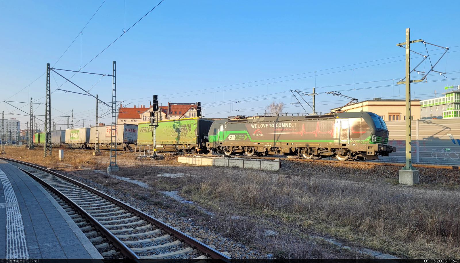193 202 der ELL schleppte am 06.03.26 einen Kesselwagenzug durch Wittenberg-Labetz Richtung Falkenberg(E).