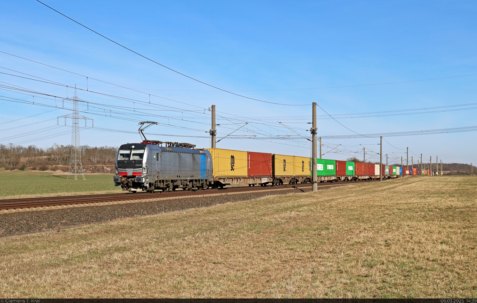 6193 181-5 (Siemens Vectron) schleppt Container bei Hohenthurm Richtung Halle (Saale).