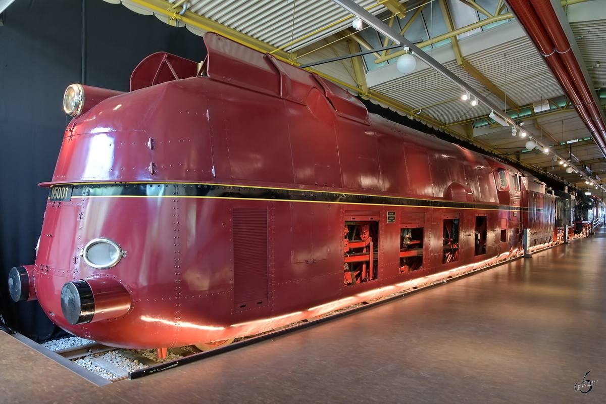 Die Stromliniendampflokomotive 05 001 ist sicherlich eines der Highlights des Verkehrsmuseums in Nürnberg. (Mai 2017)