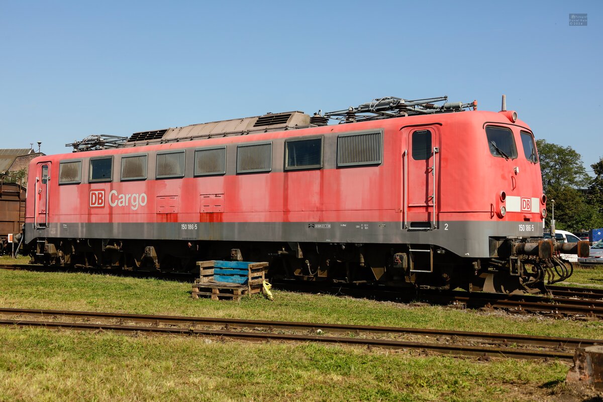 150 184 mit Dg 53300 (Nürnberg Rbf–Maschen Rbf) am 10.03.1995 in Stelle