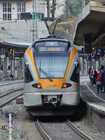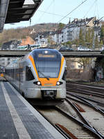 Der Elektrotriebzug ET 7.14 war Mitte März 2021 in Wuppertal-Unterbarmen unterwegs.