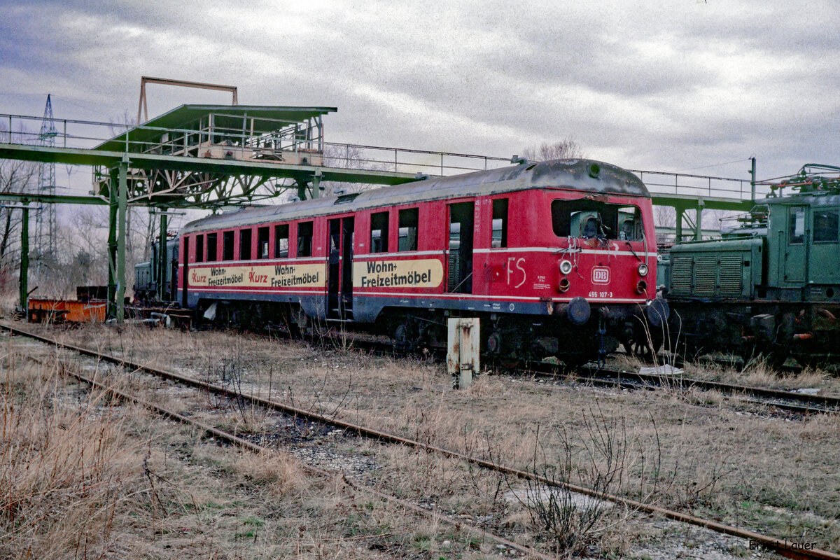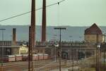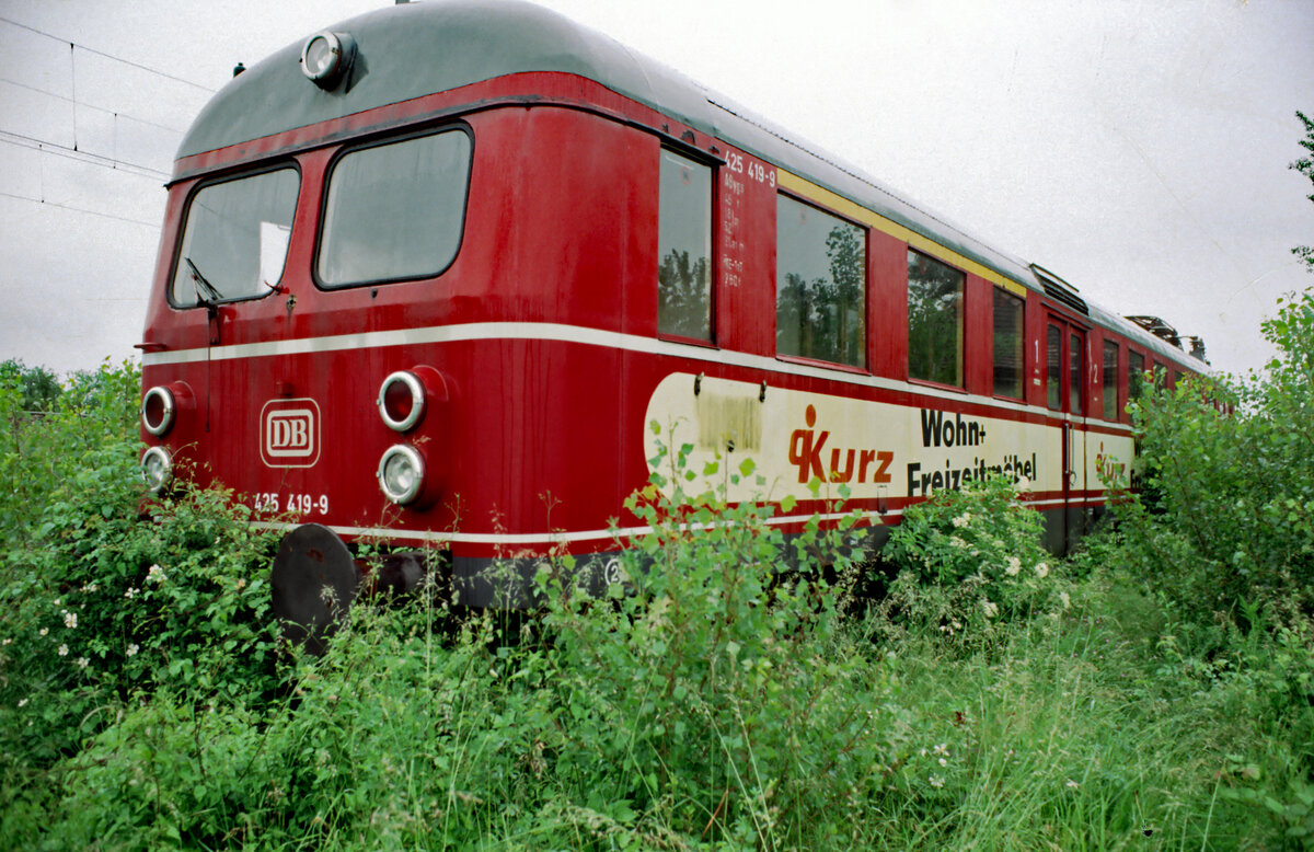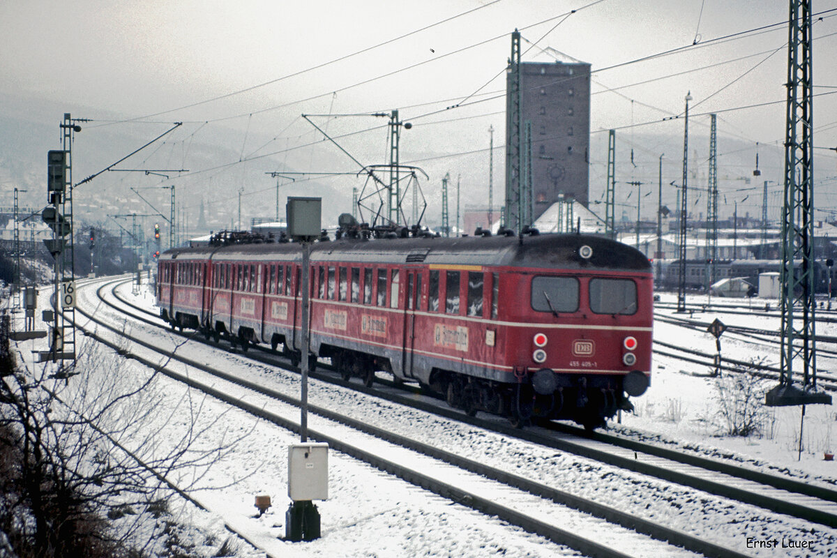 Früherer Containerbahnhof Stuttgart: ET 11.01 und ein Vorortzug der DB-Baureihe 425 alt (ET 25). Datum: 31.05.1984