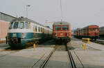 Eine hübsche Sammlung von unterschiedlichen ETs wurde am 16.03.1984 vor dem Ausbesserungswerk Cannstatt (DB) gezeigt: V.l.n.r. : ET 30 (DB-Baureihe 430 alt), ET 25 (DB-Baureihe 425 alt) und ES/ET 85 (Museumszug)