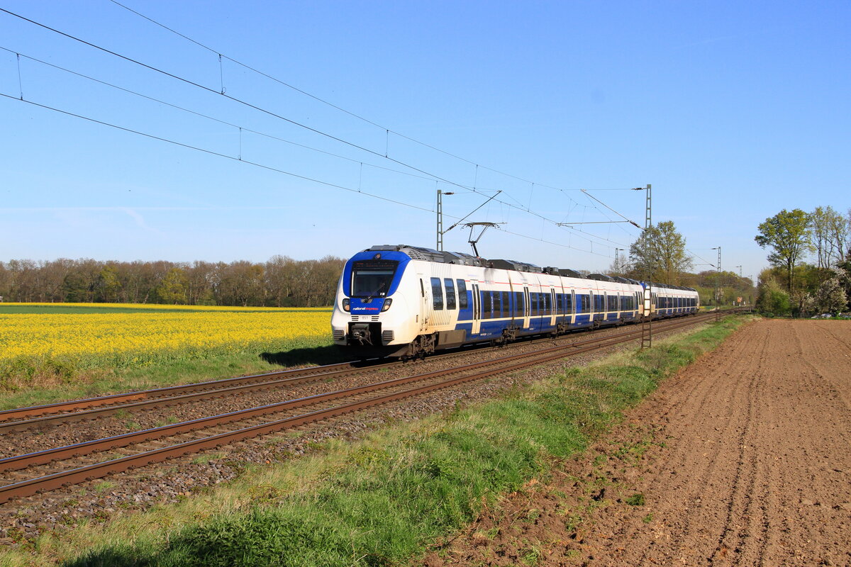 Die 442 760 plustert ihrer Hamsterbacken auf und legt sich elegant in den Gleisbogen bei Rimburg (Übach Palenberg).Gesichtet und bildlich festgehalten an der Kbs 485 am 16.April 2014.
