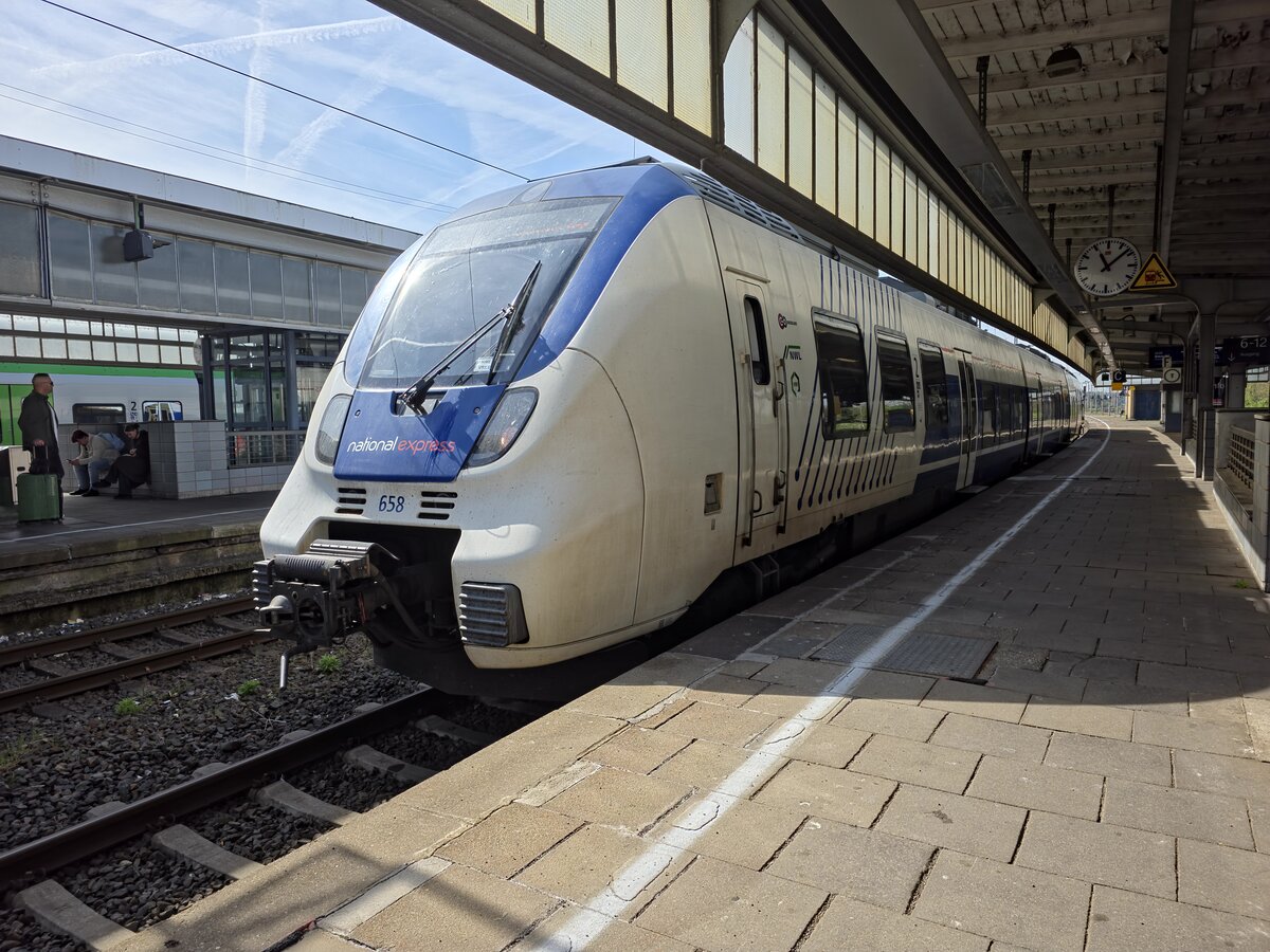 Zum ersten Mal seit langer Zeit ist der RE 44 Fossa-Emscher-Express wieder unterwegs, bis Juli mit einem Talent 2 von National Express. Dieses Foto wurde am 18.04.2026 am Oberhausen Hbf aufgenommen.