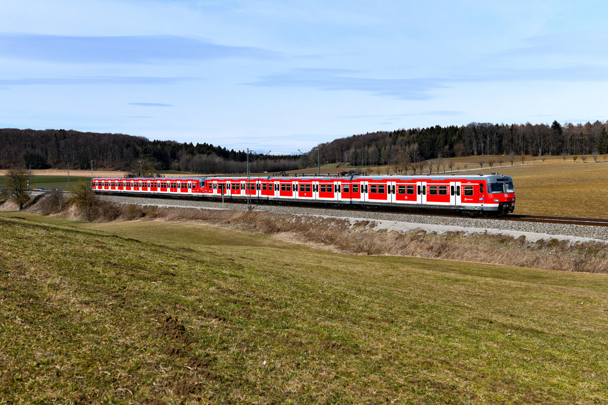 Am 03. März 2019 waren 420 474 und ein weiterer Triebzug dieser Baureihe als S4 nach Trudering unterwegs und konnten bei Kottgeisering aufgenommen werden.