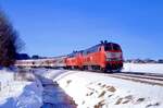 Und los geht's für 218 446 und 218 411 mit dem IC 2012. 218 411 schob den Zug von Oberstdorf bis Immenstadt, wo 218 446 sich an die Zugspitze setzte. Wenig später konnte die Ausfahrt aus Immenstadt von meiner Wenigkeit fotografisch festgehalten werden. (29.12.2025) Leonhard Groß