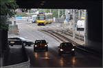 Elektrischer Vorortverkehr in Stuttgart im Mai 1978: Als Vorbote des einige Monate später aufgenommenen S-Bahn-Verkehrs verlässt ein 420-Doppel, vorne 420 701-5, Stuttgart-Bad Cannstatt in Richtung Ludwigsburg