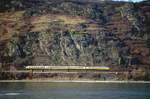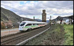 Dieser Elektrotriebzug der Baureihe 420 dürfte am 28.2.2023 ein Sonderfall gewesen sein; denn mit diesen Fahrzeugen findet kein Personenverkehr mehr auf der linksrheinischen Strecke zwischen Koblenz und Mainz statt. DB 420472-3 kam mir kurz vor Oberwesel um 15.30 Uhr entgegen. Lokführer und Beifahrer freuten sich deutlich erkennbar über meine Aufmerksamkeit.