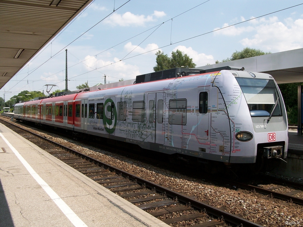 423 089 trug einige Zeit Werbung anlässlich des 40-jährigen bestehen der S-Bahn München. Neben der Werbung wurden auch noch einige technische Änderungen vorgenommen, denn der Triebzug erhielt taktile Türtaster und LED-Beleuchtung im Innenraum.