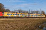 423 094 in orange und wirbt für den Beruf bei der Bahn. Von dieser Bemalung gibt es aktuell zwei Stück. Auch in lila gibt es zwei Stück. 24.1.25 bei Eglharting.