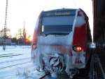 Ein schön vereister BR 425 als S2 nach Kaiserlautern bei der Einfahrt in Neckargemünd Alstadt am 17.12.10