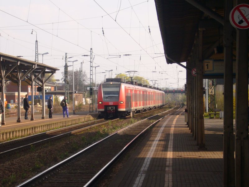 Eine Doppeltraktion 425er fährt als RE 8 in den Bahnhof Bonn-Beul ein. Aufgenommen am 02.04.07