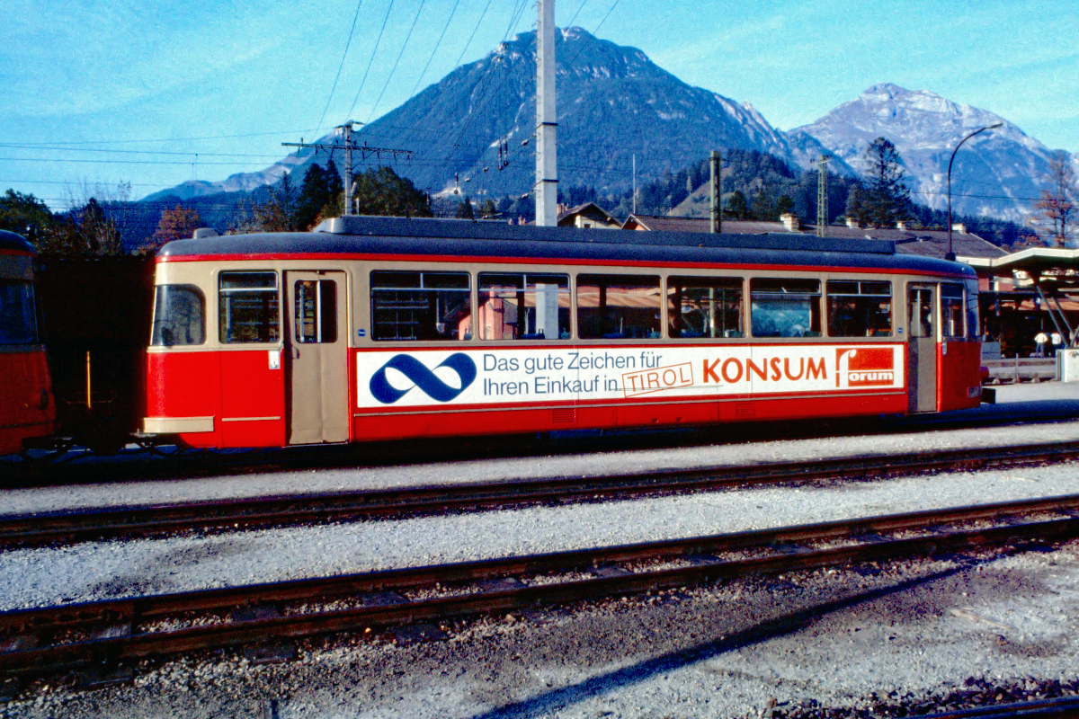 Ein recht bewegtes Leben in Deutschloand, den Niederlanden und zuletzt in Österreich und verschiedene Umspurungen hatte der ex ET 195 01 hinter sich zuletzt als VT ohne Stromabnehmer wie früher bie der Zillertalbahn, hier aufgenommen am 24.10.1983 im Bf. Jenbach