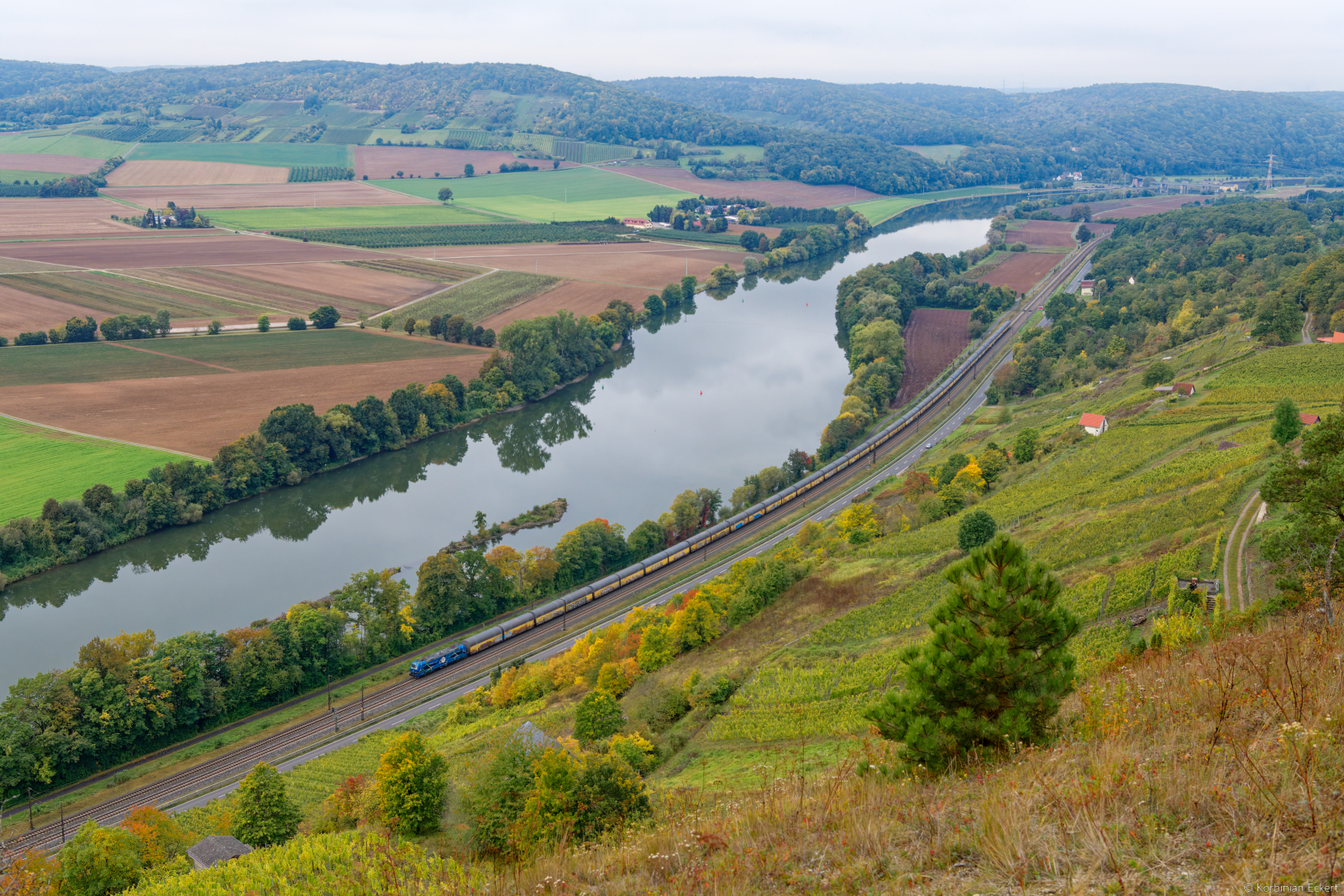 Nachdem die beiden Werbeloks von TXLogistik leider Geschichte sind, ist die 185 077 mit DB Cargo aktuell die einzige Maschine auf deutschen Schienen, die ein feuriges Motiv zeigt. Am 20. Juni 2025 bespannte sie den Neuwagentransport GAG 51142 von Seelze nach Mannheim. Ladegut waren elektrische Volkswagen des Typs ID.7, die im Werk Emden produziert wurden. Bei Hermannspiegel im osthessischen Haunetal konnte ich den Zug in seiner gesamten Länge aufnehmen. Wer genau hinsieht, kann übrigens noch einen zweiten Zug im Bild entdecken.