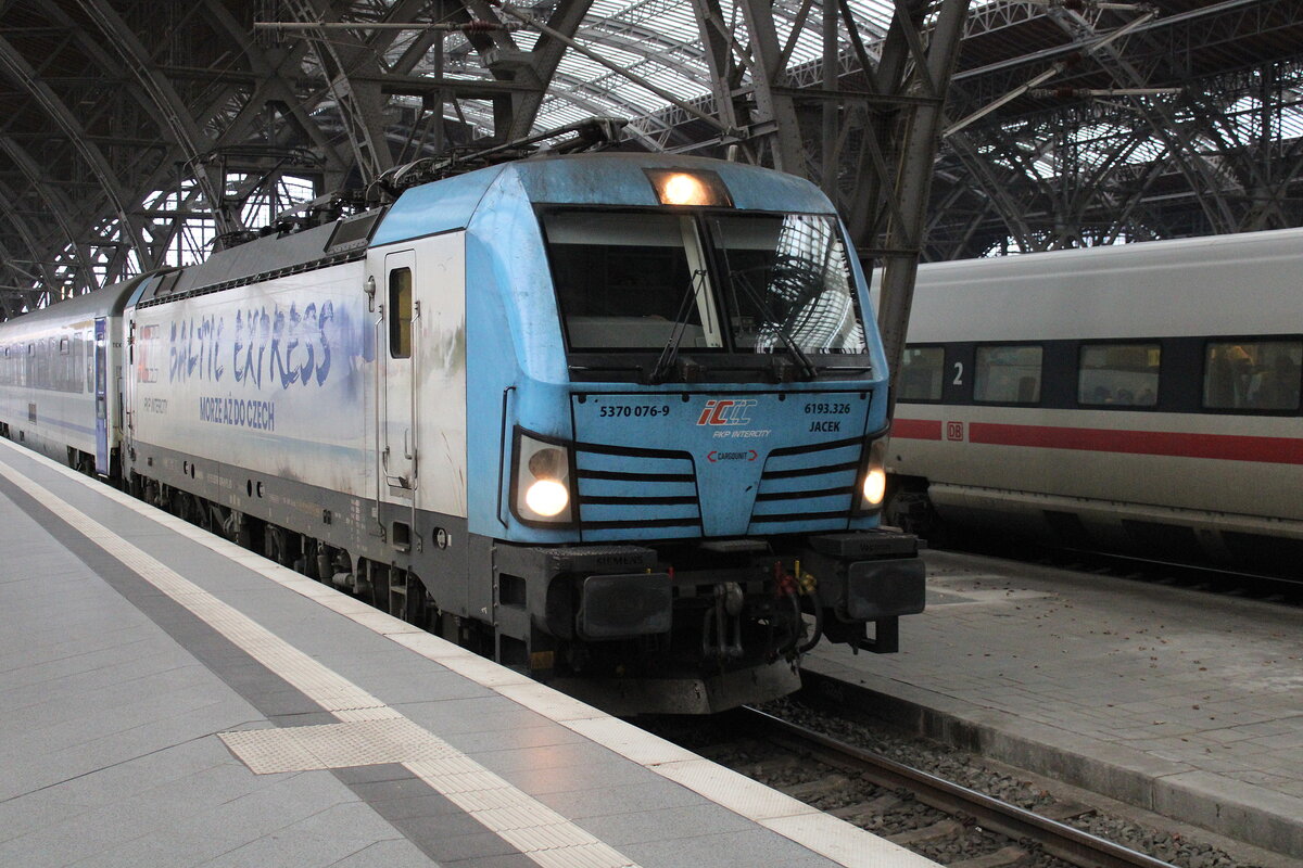 PKP IC 5370 076-9 "Jacek" mit dem seit Fahrplanwechsel neu verkehrenden EC 132 "Saxonia" aus Wrocław Główny, am 23.12.2025 in Leipzig Hbf. Frank Thomas