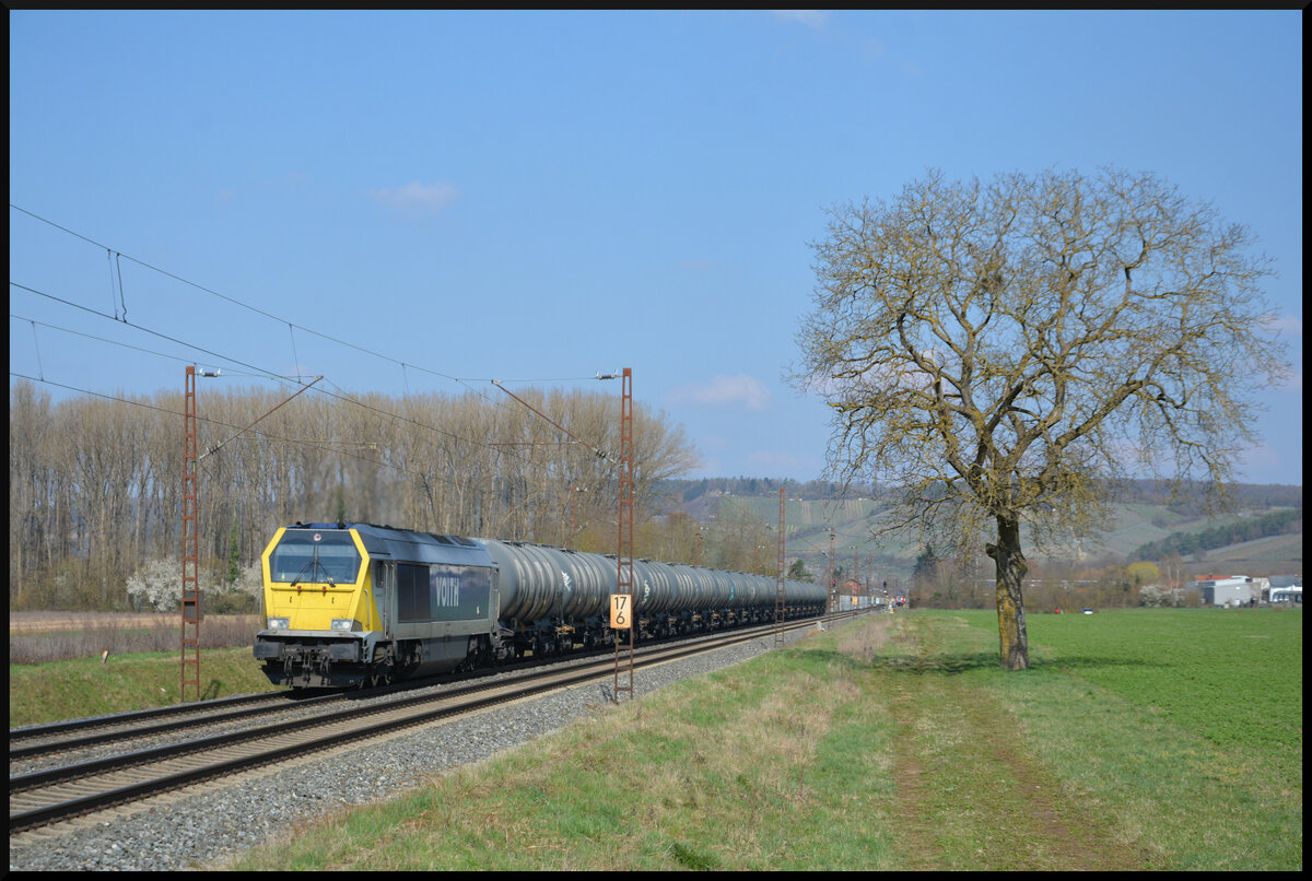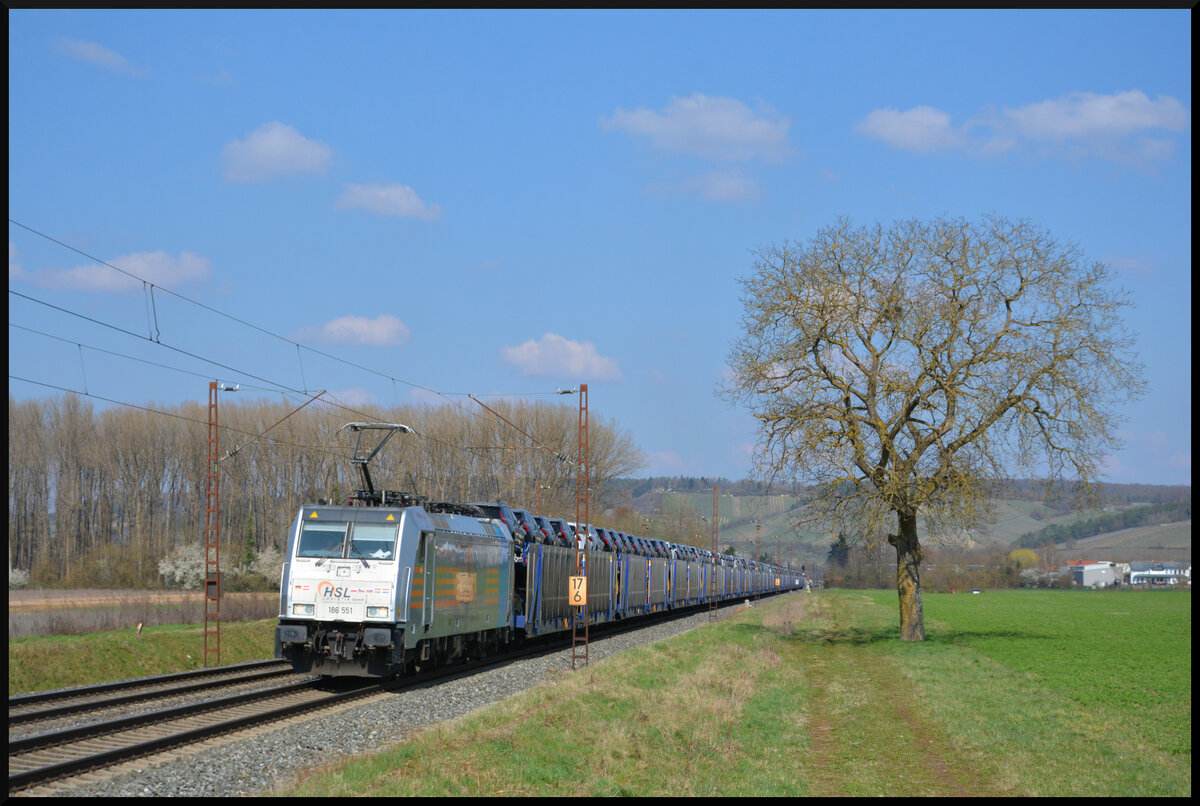 185 599 mit einem Autozug aus Gemünden kommend am 12. Oktober 2022 bei Harrbach am Main.