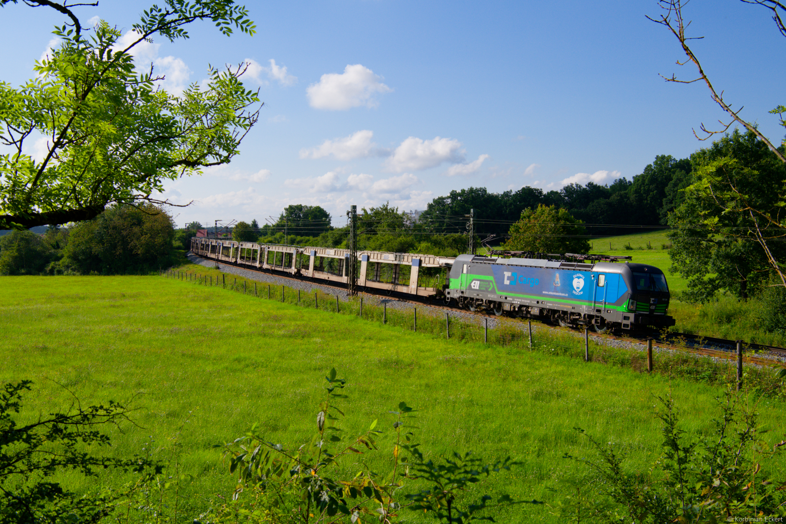 Belanglose Lok vor fotogenem Zug. So könnte man die Leistung beschreiben, die mir am Morgen des 22. Juni 2025 bei Odensachsen im osthessischen Haunetal vor die Linse fuhr. Die für die CTL fahrende 186 264 beförderte einen mit Kleintransportern von Renault beladenen Ganzzug in Richtung Bad Hersfeld. Herstellungsort der Fahrzeuge ist das Werk Batilly in Frankreich, Ziel war mutmaßlich Polen.