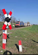 METRANS a.s., Praha [CZ] mit  383 406-6  [NVR-Nummer: 91 54 7383 406-6 CZ-MT] und Containerzug am 15.04.21 Durchfahrt Bf. Golm (Potsdam).