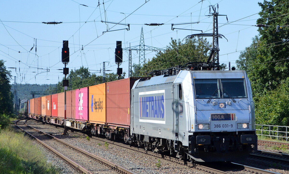 METRANS Rail s.r.o., Praha [CZ] mit "386 031-9" [NVR-Nummer: 91 54 7386 031-9 CZ-MT] und Containerzug am 09.09.21 Bf.