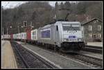 383 017 der CD Cargo schleppte am 12.12.25 einen Containerzug durch Wittenberg-Labetz Richtung Falkenberg(E).