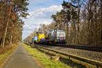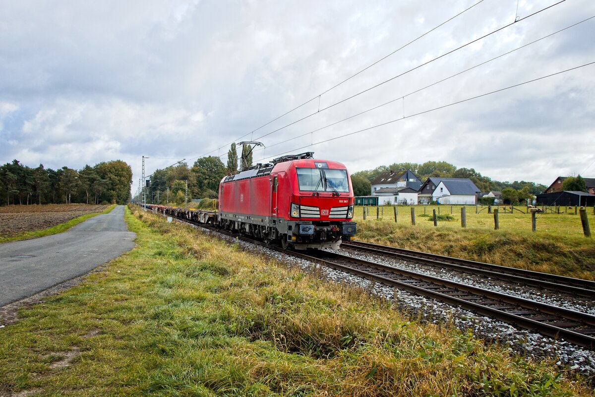 193 367 der DB Cargo mit einem leeren Containerzug bei Hamm-Neustadt (11.10.2021)