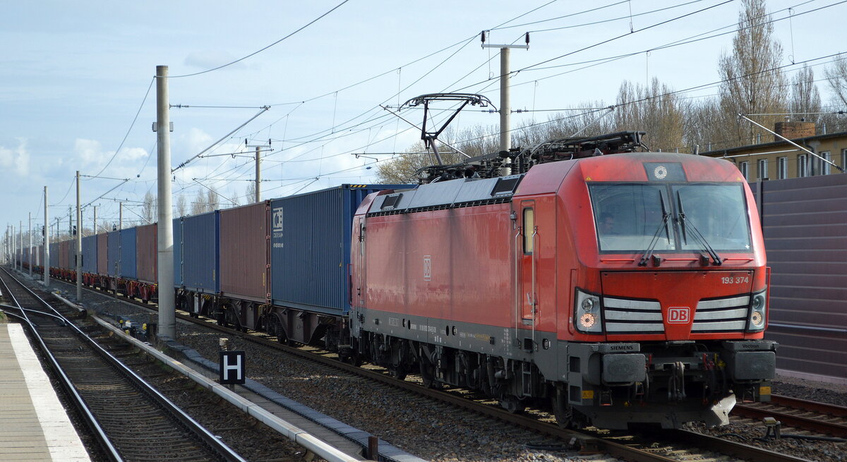 DB Cargo AG [D] mit "193 374" [NVR-Nummer: 91 80 6193 374-6 D-DB] und Containerzug am 30.03.22 Berlin-Blankenburg.