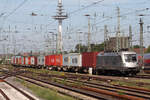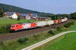 185 399 DB Cargo mit einem Containerzug bei Parsberg Richtung Regensburg, 07.09.2020