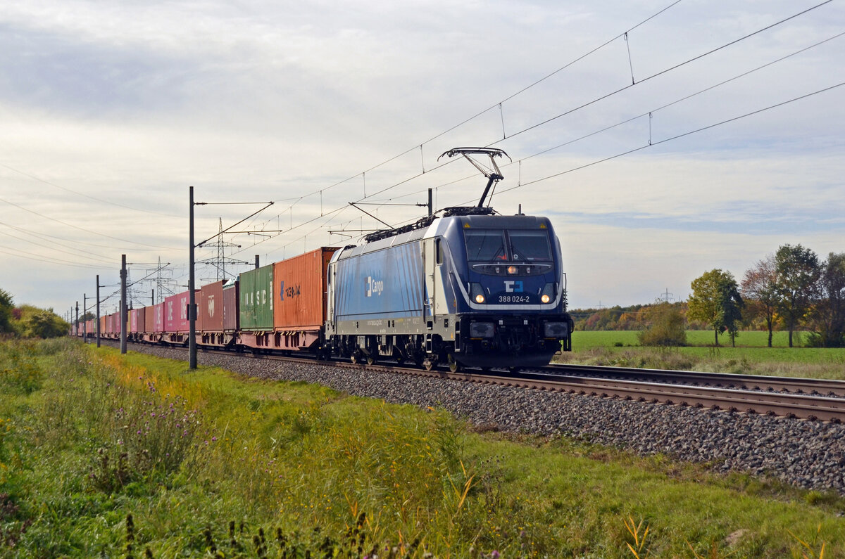 120 120-1 mit einem Containerzug in Hamm-Neustadt (06.03.2023)