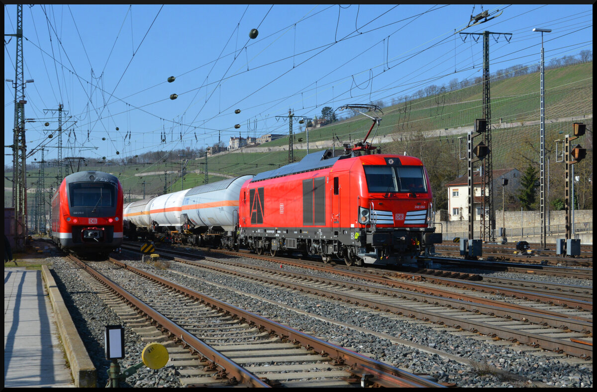 Die Dualmode-Vectron DB Cargo 249 050 am 27.02.2026 mit einem Übergabezug Würzburg-Zell Rbf nach Marktbreit unterhalb der Steinburg in der Residenzstadt Würzburg. Matthias Kümmel
