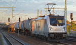 Metrans 187 503-8 mit Containerwagen Richtung Lehrte, am 15.04.2025 in Hannover Misburg.