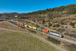 Aktuell an die ÖBB vermietet sind einige der wiederum von Railpool geleasten Vectrons der SBB Cargo. Eine der Loks aus diesem Kontingent ist die auf den Namen "Bodensee" getaufte 6193 107. Am 05. März 2025 begegnete sie mir mit einem Containerzug im vorfrühlingshaften Altmühltal bei Hagenacker.