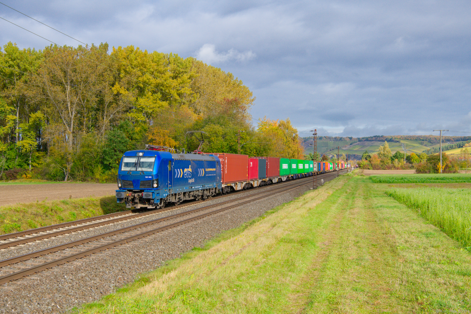 386 027 der Metrans schleppte am 11.01.26 einen schlecht ausgelasteten Containerzug durch Greppin Richtung Bitterfeld. Wegen eines Schienenbruchs bei Elster(E) wurde der Zug umgeleitet.
