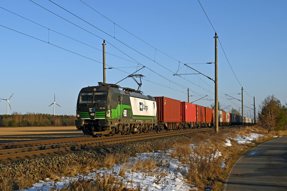 Von Kornwestheim nach Mühlenwerder verkehrt DGS 69360, eine Containerzugleistung von Boxxpress. Am Abend des 20. Juli 2013 konnte der Zug, geführt von ES 64 U2 096 bei Gambach im Maintal abgelichtet werden.