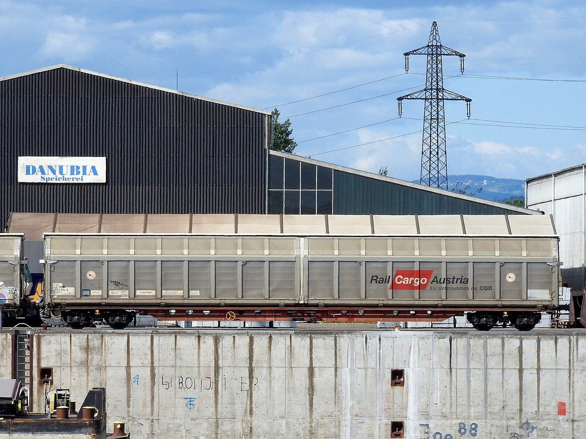 Zweiachsiger, großräumiger Schiebewandwagen vom Einsteller Rail Cargo Wagon - Austria GmbH aus Österreich mit der Nr. 21 RIV 81 A-RCW 2471 383-3 Hbbills am 11.09.19 Bahnhof Flughafen Berlin Schönefeld.