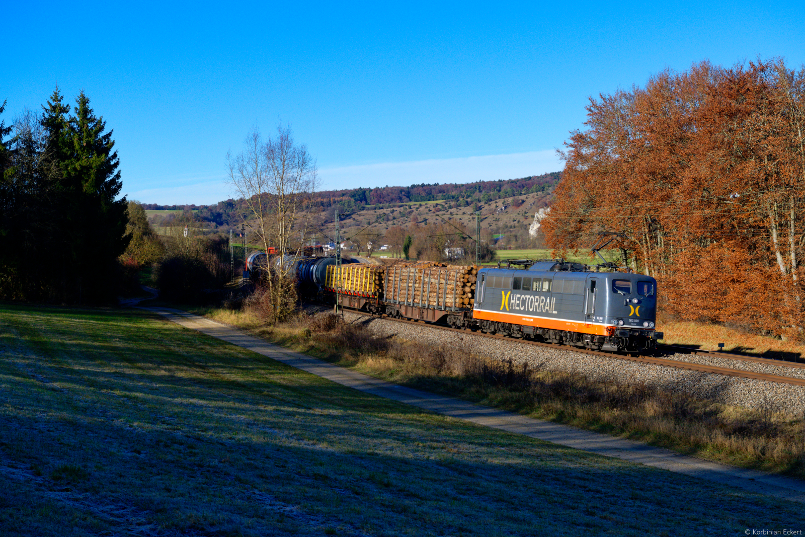 Das Sonnenlicht war bereits ganz zart, als diese 187 mit ihrem Gemischtwarenladen bei Halle-Wörmlitz durch die Saaleaue Richtung Sangerhausen rollte.