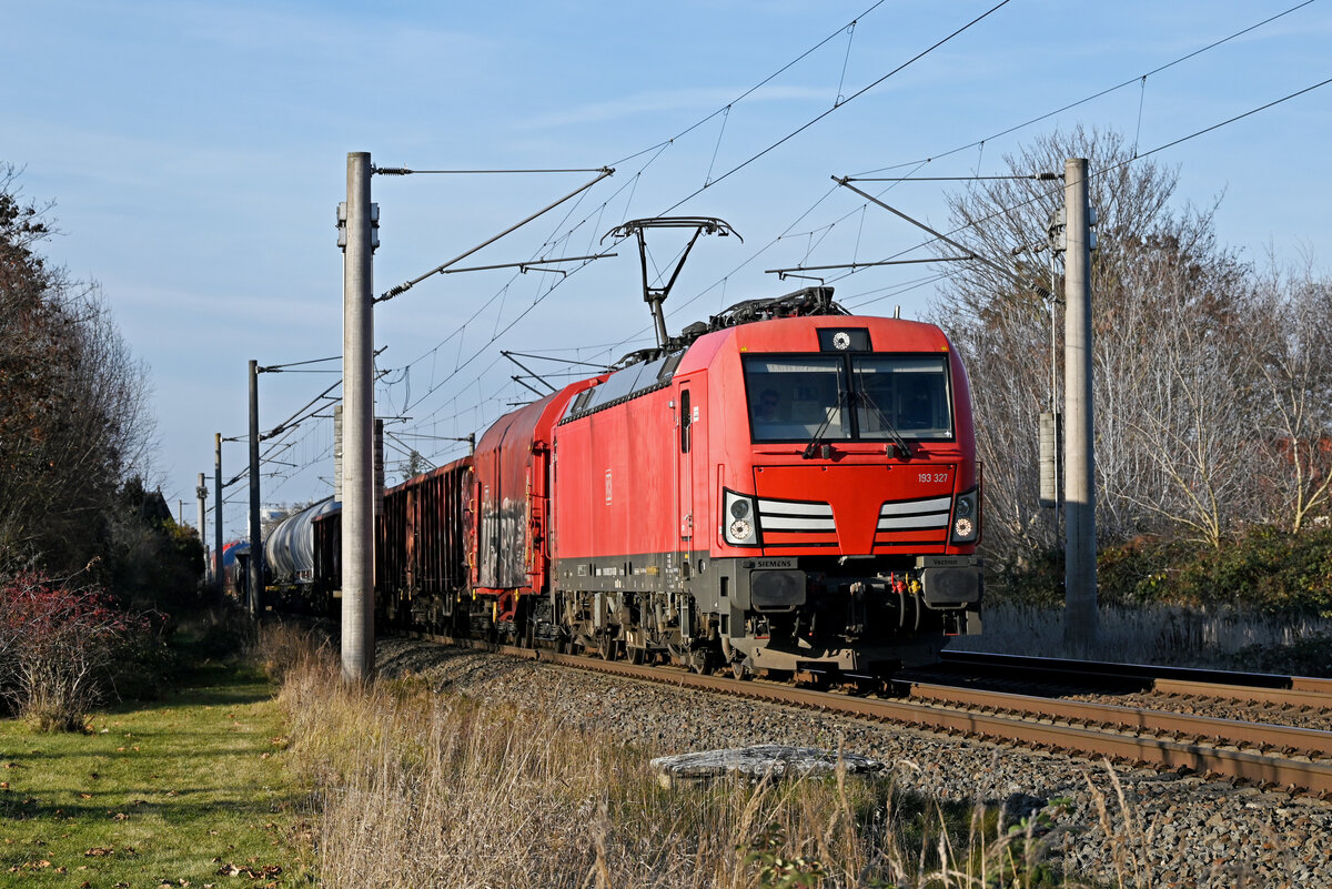 Am 02.12.25 schleppte der European-Vectron 193 362 einen gemischten Güterzug durch Greppin Richtung Bitterfeld.